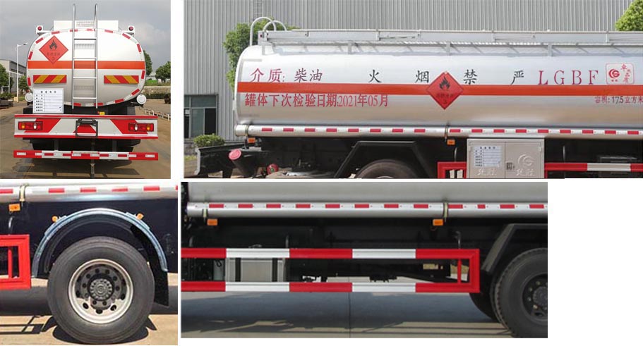 配置 | 1、該車適用于危險品運輸,運送危險貨物車輛類型為:FL型,類項號:3。罐體有效容積:14.9立方米,運輸介質:汽油,密度:700千克/立方米,罐體外形尺寸(長×寬×高)(mm):5700×2200×1450。罐體上部選裝上走道;選裝后部尾燈架樣式;選裝弧形擋泥板。選裝左側無工具箱。2、側,后防護材料均為Q235,螺栓連接;后防護截面尺寸120×60mm,下邊緣離地高500mm。3、僅采用軸距(mm):4700。后軸采用空氣懸架。隨底盤選裝駕駛室前面罩,選裝側窗玻璃;駕駛室頂部中間三個裝飾燈為選裝件;前霧燈為選裝件;駕駛室前臉擾流罩為選裝件。僅選用排氣管前置、限速裝置(限速80km/h)、前輪盤式制動及子午線輪胎的底盤;安裝帶有衛星定位功能的行駛記錄儀;ABS型號/生產廠家:3631010-C2000/東科克諾爾商用車制動系統(十堰)有限公司。發動機B6.2NS6B210油耗值為26.5 L/100Km。 該車后軸為采用空氣懸架. | ||