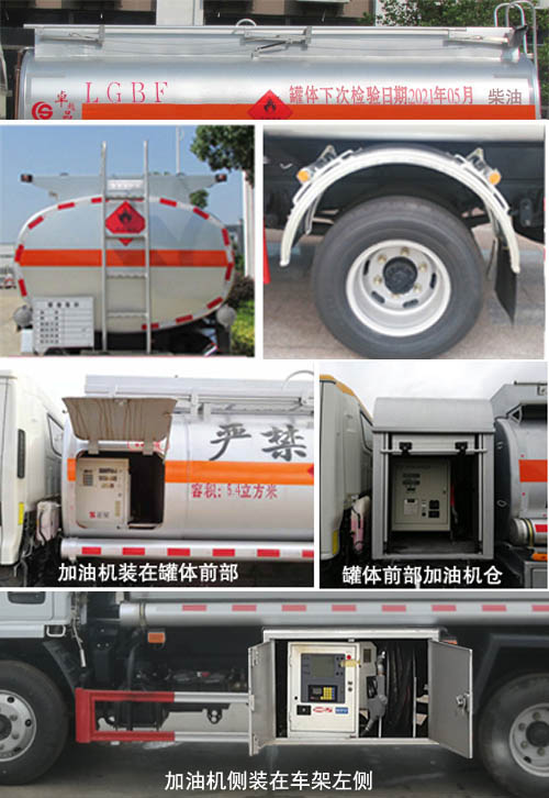 配置 | 1、該車適用于危險品運輸,運送危險貨物車輛類型為:FL型,類項號:3。運輸介質(zhì):柴油、煤油、汽油,密度:830、800、700千克/立方米,罐體有效容積4.5立方米,罐體外形尺寸(長×寬×高)(mm):①加油機側(cè)裝在車架左側(cè):3800×1600×1000,②加油機裝在罐體前部:3800×1750×1220(加油機倉長800);③選裝罐體前加油機倉:3000×1750×1220。罐體上部選裝折疊護欄、選裝無上走道;選裝弧形擋泥板。2、側(cè)防護采用冷彎型鋼/Q235,螺栓連接。后防護采用冷彎型鋼/Q235,焊接,截面高100mm,截面寬50mm,下邊緣離地高450mm。加油機型號及生產(chǎn)企業(yè):BL1111Z/珠海市貝林加油設備有限公司中山分公司,HS1812B/托肯恒山科技(廣州)有限公司,SKES-1112/恒和嘉華科技有限公司(上海伯萊機械有限公司),SK20QF-111A、SK20QF-222A/鄭州三金石油設備制造有限公司,CS20D1110F/正星科技有限公司,JSK-70B1121CZ,JSK-70B1121C,JSK45B1121C/穩(wěn)恩佳力佳(北京)石油化工設備有限公司, ZH6444/佛山市眾澤機電科技有限公司, XTST121BF1/邢臺正潤通科技發(fā)展有限公司,TA-1111KFJ/沈陽航天新陽機電有限公司。3、隨底盤選裝前面罩,前保險杠,前組合燈具,選裝左右油箱位置。僅選用排氣管前置、限速裝置(限速80km/h)、前輪盤式制動及子午線輪胎的底盤,安裝帶有衛(wèi)星定位功能的行駛記錄儀。ABS廠家及型號:襄陽東風隆誠機械有限責任公司/ABS/ASR-24V-4S/4M。轉(zhuǎn)向輪安裝輪胎爆胎應急防護裝置。 | ||