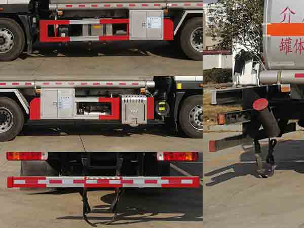 配置 | 1、該車適用于危險品運輸,運送危險貨物車輛類型為:FL型,類項號:3。罐體有效容積:14.3立方米,運輸介質:汽油,密度:700千克/立方米,罐體外形尺寸(長×寬×高)(mm):5700×2150×1480。2、側、后防護材料均為Q235,螺栓連接。后防護截面尺寸120×60mm,下邊緣離地高500mm。罐體上部選裝上走道;選裝后部尾燈架樣式;選裝弧形擋泥板。3、僅采用4700mm的軸距。僅選用排氣管前置、限速裝置(限速80km/h)、前輪盤式制動及子午線輪胎的底盤;安裝帶有衛星定位功能的行駛記錄儀;ABS系統型號/生產企業對應關系:ABS-E/威伯科汽車**系統(**)有限公司;ABS/ASR-24V-4S/4M/東科克諾爾商用車制動系統(十堰)有限公司;CM4XL-4S/4M/廣州瑞立科密汽車電子股份有限公司;3550D-1010/東科克諾爾商用車制動系統(十堰)有限公司.采用的發動機與油耗值(L/100Km)對應關系為:F4.5NS6B220/24.4,B6.2NS6B210/26。該車轉向輪安裝輪胎爆胎應急防護裝置,后軸采用空氣懸架。 | ||