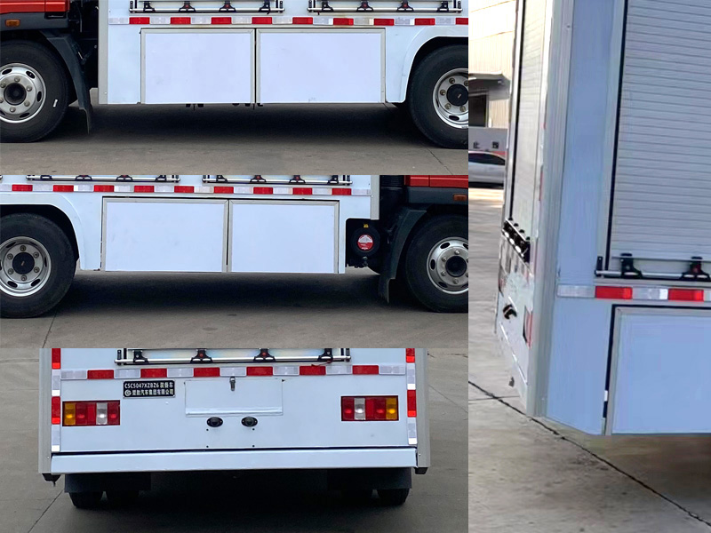 其它: | 廂體頂部封閉,不可開啟。該車配備專用裝備架等專用設備, 主要用于裝載警用裝備及勘查、搶險救援裝備的專用車輛。側防護由車身結構代替,后防護材料為Q235,焊接,后防護截面尺寸(mm)100×50,下邊緣離地高450mm。隨底盤選裝駕駛室,選裝鋁合金輪輞。ABS型號/生產企業:XH-KQ4S4M-E01/廣州市西合汽車電子裝備有限公司,CM4XL-4S/4M/廣州瑞立科密汽車電子股份有限公司,VIE ABS-Ⅱ/浙江萬安科技股份有限公司。發動機與油耗值對應關系為(L/100km):WP2.3NQ130E61/10.18,D25TCIF1/11.06,WP2.5NQ160E61/10.11,WP2.5NQ150E61/10.11。選裝ETC。僅采用軸距3280mm。整備質量包含冷卻液、潤滑劑、反光背心、三角警告牌、備胎、停車楔、隨車工具、專用裝備。貨廂重量(kg):2160;材質/厚度:底板,碳鋼/2mm;側板,內板鋁板/1.2mm,外板碳鋼/2mm。 |