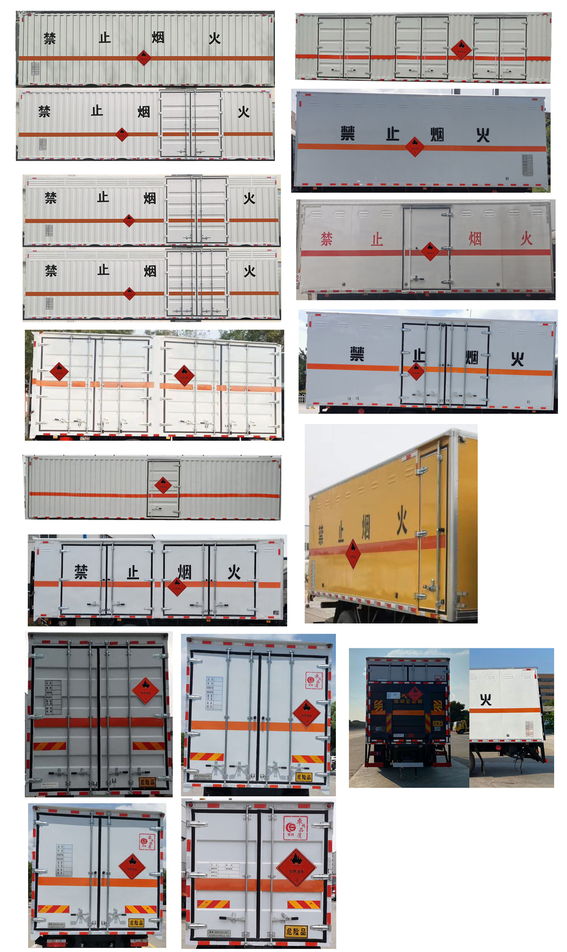 配置 | 1、該車適用于運輸危險品,運輸具有**容器(瓶)包裝的物品,運送危險物品類項號:3。廂體頂部封閉,不可開啟。2、側/后防護材料為Q235,側防護螺栓連接,后防護焊接,截面尺寸120×60mm,下邊緣離地高490mm。3、僅采用軸距(mm):4700,5000。隨底盤選裝駕駛室前面罩,選裝側窗玻璃,駕駛室頂部中間三個裝飾燈為選裝件,前霧燈為選裝件,駕駛室前臉擾流罩為選裝件。僅選用排氣管前置、限速裝置(限速80km/h)、前輪盤式制動及子午線輪胎的底盤,安裝帶有衛星定位功能的行駛記錄儀,EBS型號/生產廠家:EBS5/東科克諾爾商用車制動系統(十堰)有限公司。采用的發動機與油耗值(L/100Km)對應關系為: B6.2NS6B210/26.5,DDi50E190-60/23.9。4、廂體側面選裝開門型式及位置,選裝不帶側開門,選裝瓦楞板結構;廂體側面板選裝開百葉窗。選裝尾板,尾板收起狀態水平長度為290mm,尾板質量為550kg。選裝ETC。 | ||