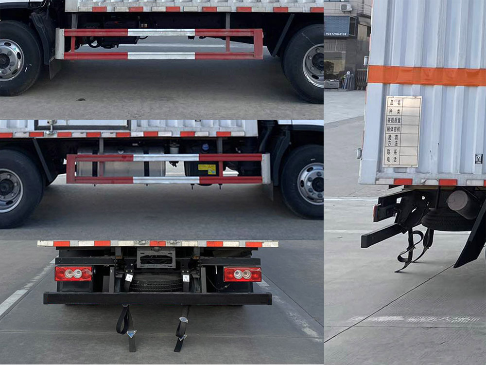 其它: | 1、該車適用于運(yùn)輸危險(xiǎn)品。廂體頂部封閉不可開啟。運(yùn)輸具有獨(dú)立容器(瓶)包裝的物品,運(yùn)送危險(xiǎn)物品類項(xiàng)號(hào):8。2、側(cè),后防護(hù)材料均為Q235,螺栓連接;后防護(hù)截面尺寸100×50mm,下邊緣離地高410mm。廂體側(cè)面選裝開門型式及位置,選裝不帶側(cè)開門,選裝瓦楞板結(jié)構(gòu);選裝百葉窗。3、隨底盤選裝排半駕駛室,選裝導(dǎo)流罩。僅選用排氣管前置、限速裝置(限速80km/h)、前輪盤式制動(dòng)及子午線輪胎的底盤;轉(zhuǎn)向輪裝備輪胎爆胎應(yīng)急防護(hù)裝置。安裝帶衛(wèi)星定位功能的行駛記錄儀。ABS系統(tǒng)型號(hào):ABS-VI.E;生產(chǎn)企業(yè):廣州瑞立科密汽車電子股份有限公司.ABS系統(tǒng)型號(hào):ABS-E;生產(chǎn)企業(yè):威伯科汽車控制系統(tǒng)(中國)有限公司.ABS系統(tǒng)型號(hào):ABS8.8 ECU 24V,生產(chǎn)企業(yè):東科克諾爾商用車制動(dòng)系統(tǒng)(十堰)有限公司。發(fā)動(dòng)機(jī)/油耗值(L/100km)對(duì)應(yīng)關(guān)系為:CY4SK261/16.09,D30TCIF1/16.19,F2.8NS6B156/15.39,F3.8NS6B156/14.90??蛇x裝ETC車載裝置。 | ||
