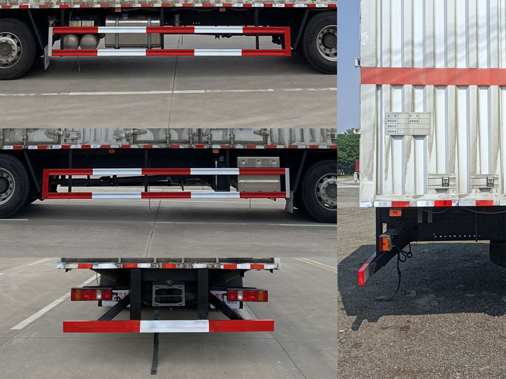 其它: | 1、該車為危險品運輸車.運輸具有獨立容器(瓶)包裝的易燃液體物品.運送危險物品類項號:3類.廂體頂部封閉不可開啟.2、側、后防護材料均為Q235,焊接;后防護截面尺寸(mm)120×50,下邊緣離地高490mm。廂體側面選裝開門型式及位置,選裝不帶側開門,選裝貨廂平面或瓦楞結構;廂體側面選裝開百葉窗,選裝后部樣式。3、僅選用1800+5600mm軸距,僅選用排氣管前置、限速裝置(限速80km/h)、前輪盤式制動及子午線輪胎的底盤,轉向輪安裝輪胎爆胎應急防護裝置,后軸采用空氣懸架,安裝帶有衛星定位功能的行駛記錄儀,隨底盤選裝駕駛室,選裝前部燈具,選裝ETC。EBS型號/廠家:EBS3/威伯科(上海)管理有限公司。發動機/油耗值(L/100km)對應關系為:MC07H.35-60/32.45,MC07.31-60/32.43,MC07.27-60/32.43,MC07.25-60/32.43,WP7H270E62/32.15,WP7H245E62/32.15,WP7H220E62/32.15,WP7H320E62/32.60,WP7H300E62/32.60。 | ||