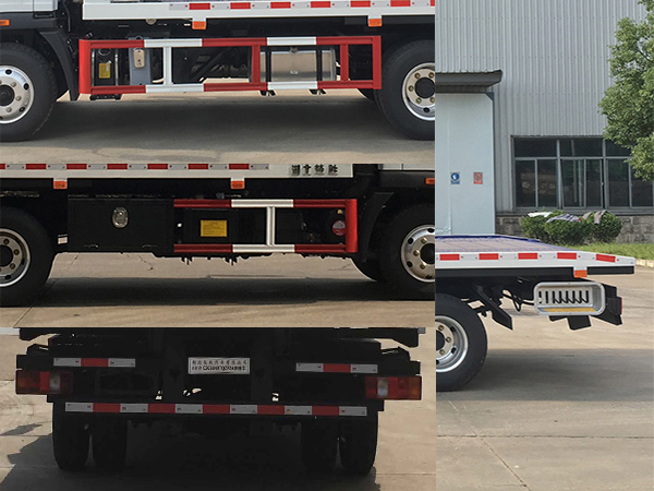 ABS型號(hào):CM3XL-4S/3M(4SF)/XH-KQ4S3M-E01;ABS生產(chǎn)企業(yè):廣州瑞立科密汽車(chē)電子股份有限公司/廣州市西合汽車(chē)電子裝備有限公司;隨底盤(pán)選裝前面罩,前保險(xiǎn)杠,前組合燈具,隨底盤(pán)選裝前盤(pán)式制動(dòng)器,前霧燈為選裝件。側(cè)、后防護(hù)材料均為Q235,側(cè)防護(hù)螺栓連接;后防護(hù)焊接,截面尺寸100×50mm,下邊緣離地高450mm;專(zhuān)用功能及裝置:該車(chē)主要用于道路清障,主要專(zhuān)用裝置為絞盤(pán)、鋼絲繩、油缸、平板;托舉質(zhì)量(kg):準(zhǔn)乘人數(shù)2人對(duì)應(yīng)托舉質(zhì)量為565kg,準(zhǔn)乘人數(shù)3人對(duì)應(yīng)托舉質(zhì)量為500kg. |
