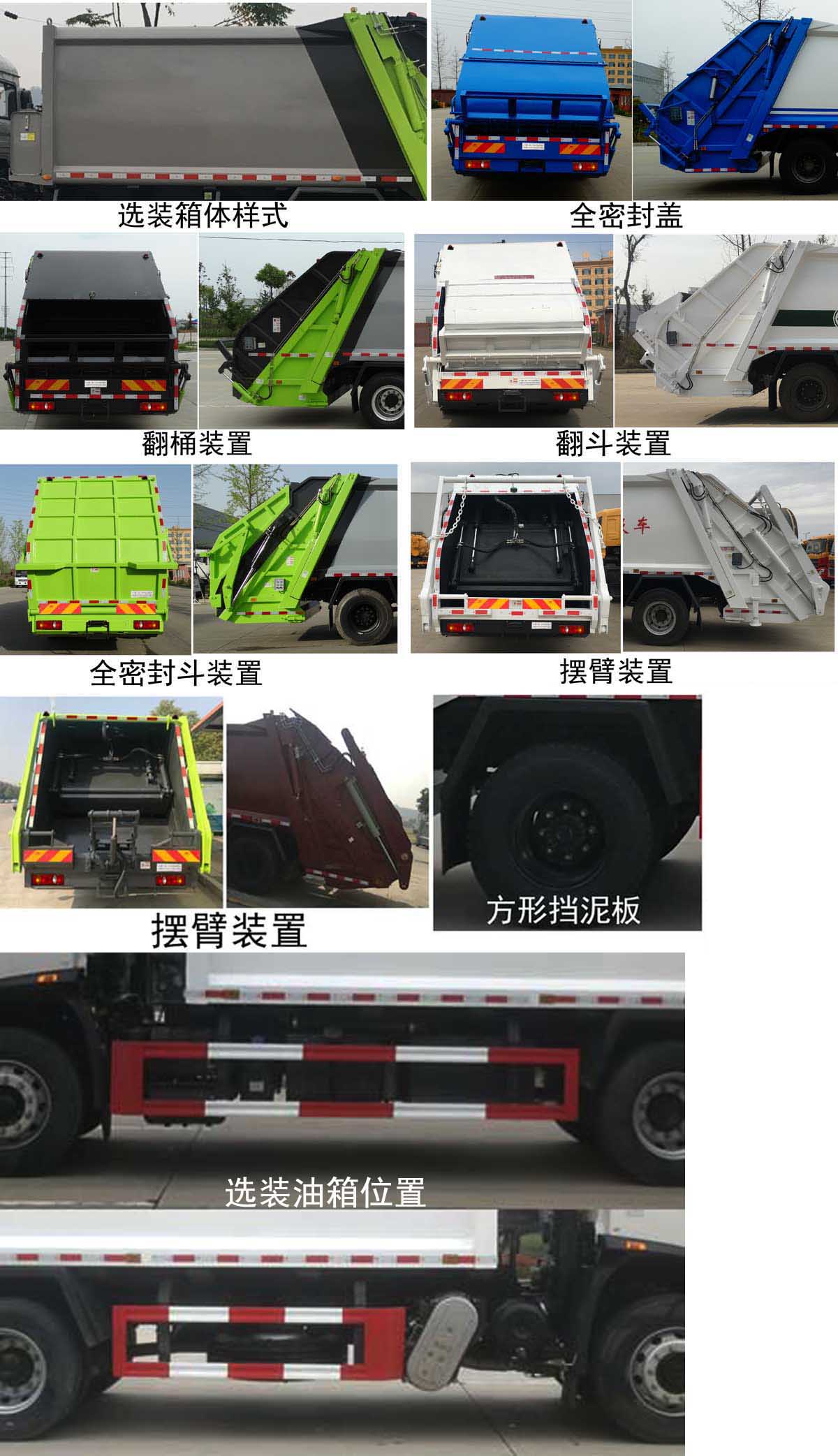配置 | 1、該車主要專用裝置由箱體、壓縮系統組成,用于垃圾的收集與清運。該車可選裝方形或弧形箱體,選裝全密封蓋裝置,選裝方形擋泥板,選裝后部工作裝置,選裝側防護樣式。選裝工作裝置時外形長/前懸/軸距/后伸對應關系為(mm):①無上料裝置:8670/1400/4500/-;8700/1430/4500/-;8870/1400/4700/-;8900/1430/4700/-;②全密封斗裝置和擺臂裝置:8870/1400/4500/200;8900/1430/4500/200;9070/1400/4700/200;9100/1430/4700/200;③翻桶裝置和翻斗裝置:9070/1400/4500/400;9100/1430/4500/400;9270/1400/4700/400;9300/1430/4700/400。僅采用4500mm,4700mm軸距。2、側防護采用冷彎型鋼/Q235,螺栓連接;后防護由專用裝置替代,下邊緣離地高:500mm。3、隨底盤選裝高度不同的駕駛室;選裝前霧燈;選裝駕駛室頂部裝飾燈;選裝駕駛室前面罩;選裝前保險杠及前部燈具,駕駛室前臉擾流罩為選裝件;駕駛室臥鋪側窗選裝裝飾板;選裝油箱安裝位置,選裝踏步結構。安裝帶有衛星定位功能的行駛記錄儀。ABS型號/生產廠家:3631010-C2000/東科克諾爾商用車制動系統(十堰)有限公司,ABS 8/東科克諾爾商用車制動系統(十堰)有限公司, 4460046450/威伯科汽車**系統(**)有限公司。采用的發動機與油耗值對應關系為(L/100Km):DDi50E190-60/23.9,D4.5NS6B190/24.4,D6.7NS6B230/23.7,B6.2NS6B210/23.8,B6.2NS6B230/23.8。 | ||