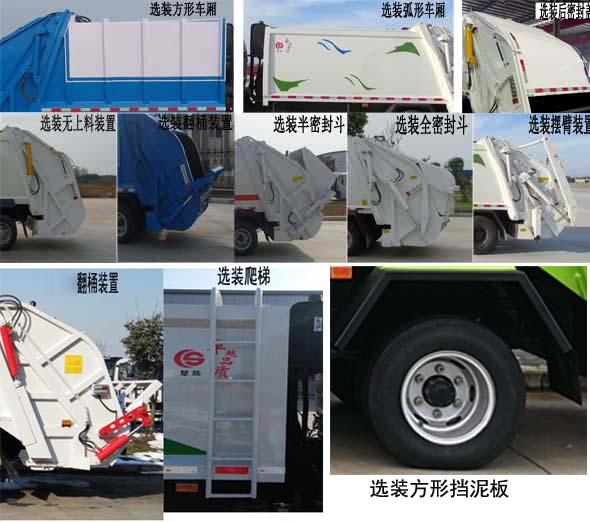 配置 | 1、該車用于垃圾收集清運,主要專用裝置為箱體、壓縮系統。僅選用3365mm軸距。該車可選裝方形或弧形車箱;選裝后密封蓋裝置;選裝箱體前部爬梯;選裝方形擋泥板;選裝后部工作裝置。整車外形長(mm)/后伸(mm)/整備質量(kg)對應關系為:選裝無上料裝置時,6580/-/5200;選裝翻桶機構、半密封斗裝置時,6980/400/5400;選裝擺臂裝置時,6740/160/5400;選裝全密封斗裝置時,6780/200/5400.2、側防護材料采用Q235,螺栓連接;后防護由專用裝置代替,下邊緣離地高500mm。3、隨底盤選裝改前圍面板,進氣格柵,前組合燈具的駕駛室。ABS系統型號/廠家為VIE ABS-Ⅱ/浙江萬安科技股份有限公司,CM4XL-4S/4M/廣州瑞立科密汽車電子股份有限公司。發動機/油耗值對應關系為(L/100km):D25TCIF1/15.6,Q23-115E60/15.6. | ||