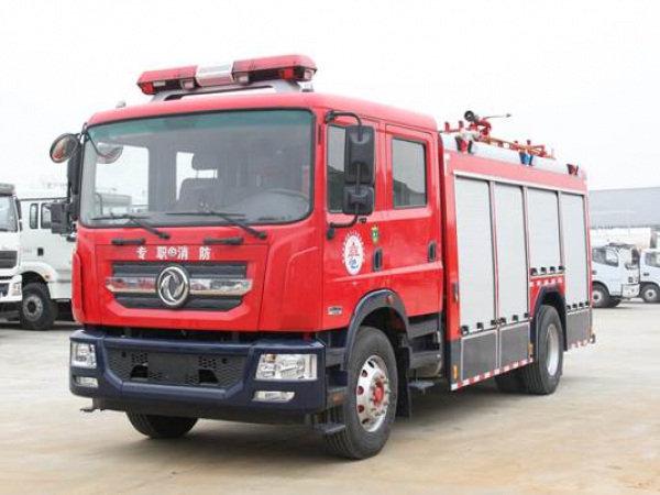 5噸消防車采用東風汽車股份有限公司EQ1185DJ9CDF 型二類汽車底盤,原裝雙排駕駛室,乘員3+3人,該車駕乘舒適輕便。上裝采用內藏式水罐,整車載液量為6500kg。器材箱采用高質量鋁合金卷簾門。底盤取力,發動機型號為B6.2NS6B230,最大功率169kW,通過萬向聯軸器驅動安裝在汽車尾部泵房里的上海雄真CB10/40型常壓消防泵,可在1.0MPa下穩定輸出40L/s的流量;車頂安裝成都威斯特消防器材有限責任公司生產的PS30W型消防炮(水罐消防車),流量30L/s,對應壓力1.0MPa,最大承壓1.3MPa,射程60m,可360°旋轉。同時該車具有比功率大、綜合性能強、操控集中簡便等特點。